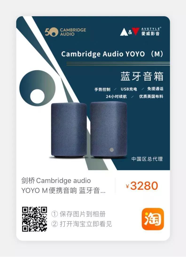 英国Cambridge Audio剑桥YOYO M无线立体声音箱全国优惠零售价:3990RMB, 疫情期优惠价:3280RMB