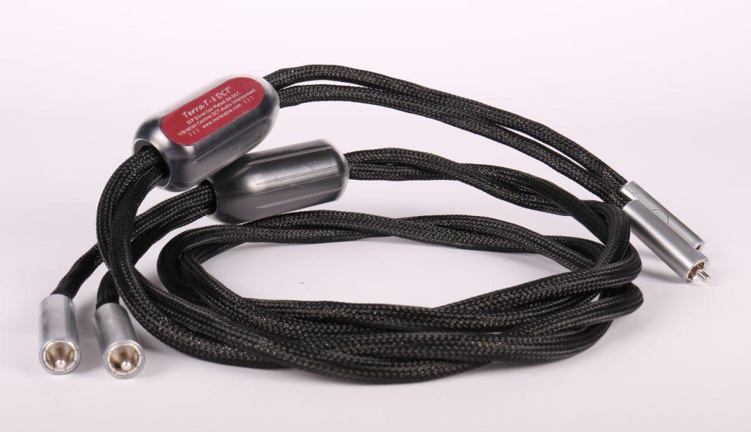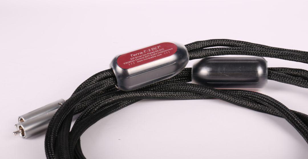 Terra T-3 DCT³使用的导体是6N OCC单晶铜,并经过最高纯度的SIP镀银制作,而编织网方面也为高纯度镀银的6N OCC单晶铜制成。而披覆方面则采用聚四氟乙烯或硅电介质进行保护,并能应对超高频RF带宽范围。Terra T-3 DCT³跟旗舰相似,亦有着极低的电容和电感表现,加入LEAD-FREE 2%Silver Solder的高科技焊接工艺,亦令声音的通透度提高。在接口方面也是十分讲究,使用了高质量的标准75Ω插头,让音频玩家感受到广阔的音场和极高的分析力。