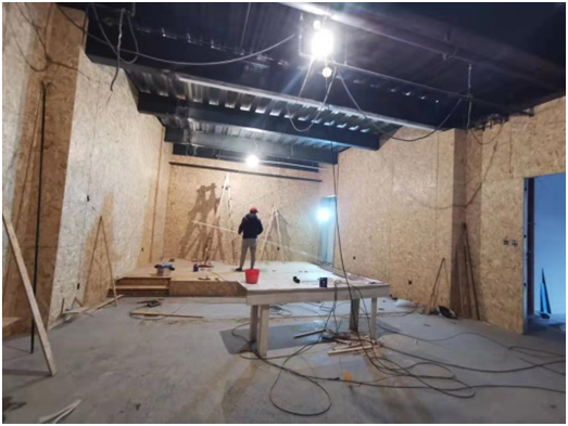 影音室项目在超集展厅二层,展厅集办公、展示为一体,对影院建声要求较高。整体墙面原本采用的是钢结构隔板构建。为了保证视听效果的同时确保声音不干扰其它区域。所以在确定施工方案时隔音处理是重点,考虑到隔音的空气和共振传导,墙面、顶部、地面采用双层隔音加上减振设计,影音室进入门采用双重隔音门,保证视听室内的隔音效果。