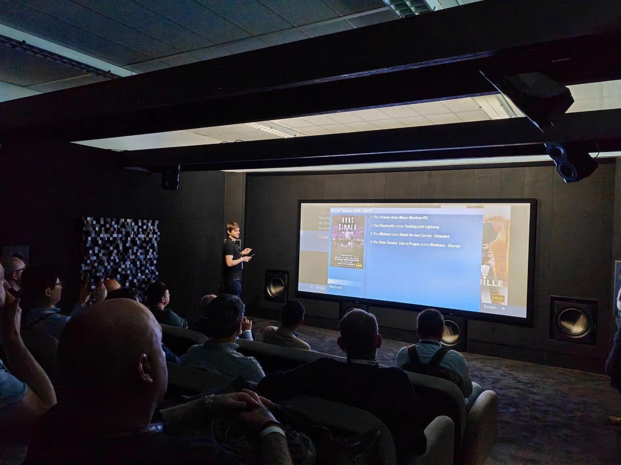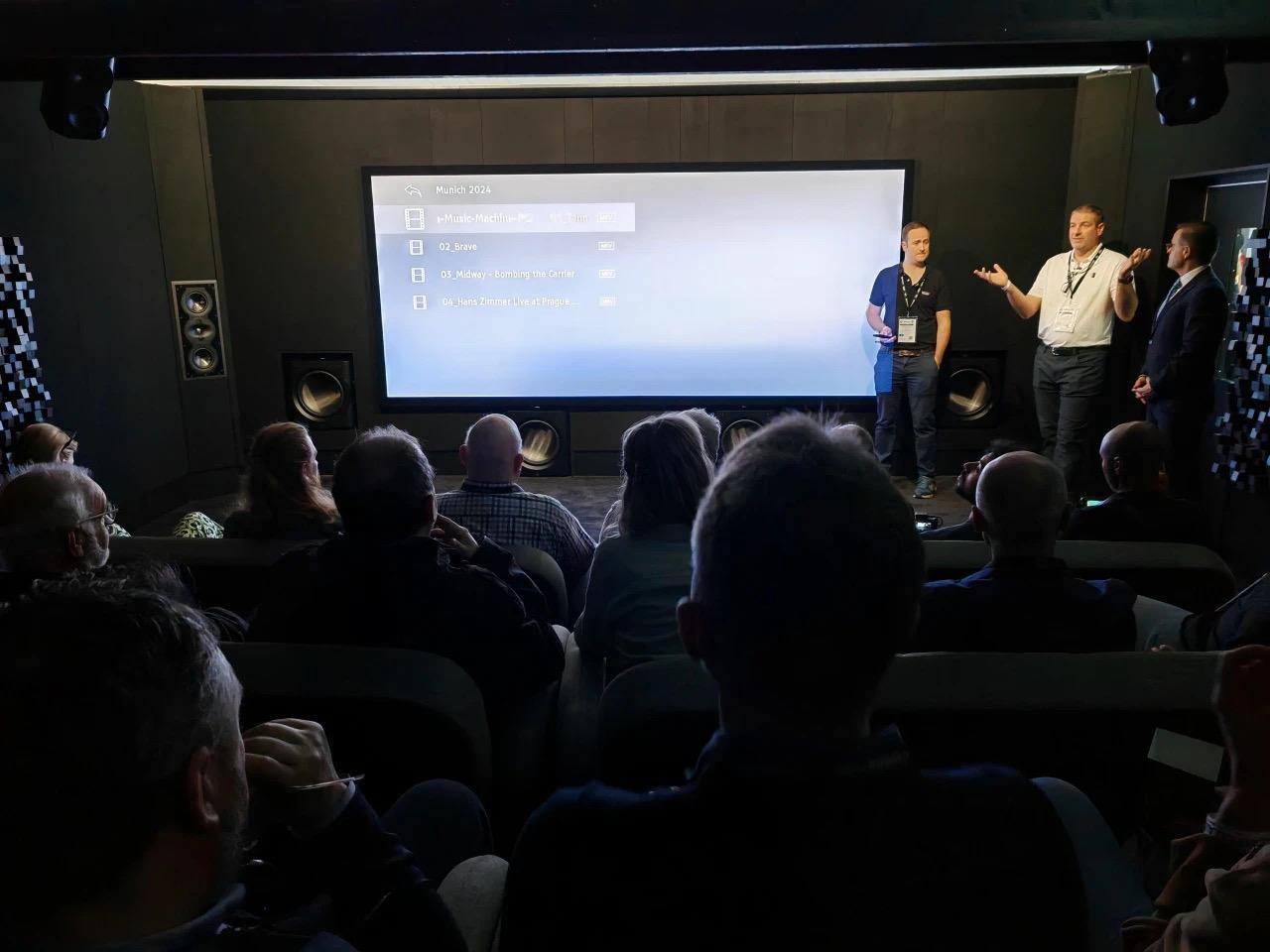 演示器材主聲道L、C、R:perlisten S7iX3水平環繞聲道perlisten S5iX2+perlisten S4iX4天空聲道perlisten S3sx6超低音perlisten D15sx8影院前級:Trinnov Altitude32後級放大器:Dan D』Agostino X1Trinnov Amplitude16X2電影播放服務器:kaleidescape投影機:巴可Barco Residential Njord CS (CinemaScope)幕布:Display Technologies (UK) 2.37:1編織幕