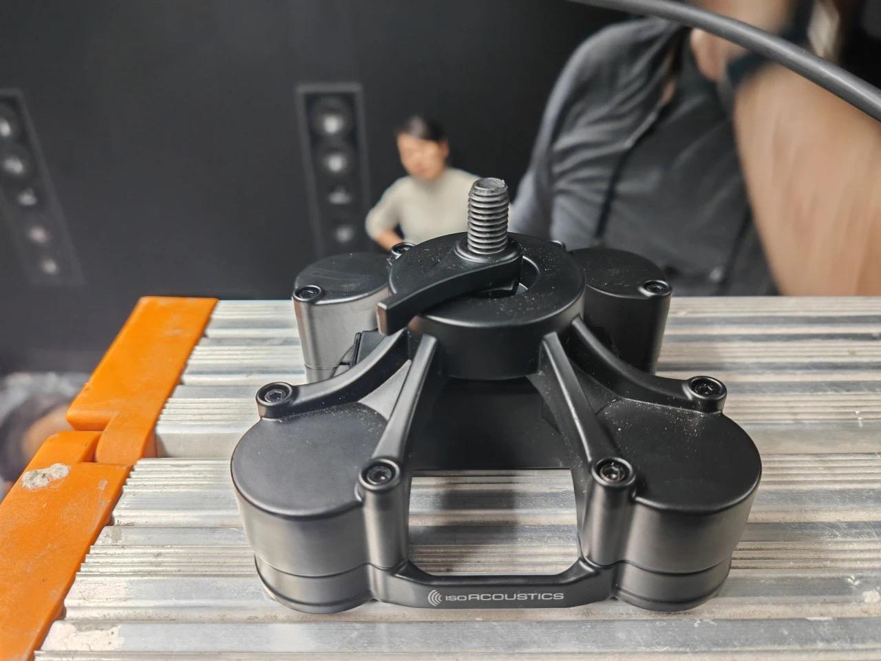 什麼叫武裝到牙齒!本次展會Perlisten天空聲道安裝喇叭的支架都是由加拿大專業避震品牌ISOAcoustics定製,想必價格一定不菲,但是作為Perlisten這個全球最好揚聲器品牌之一的安裝支架好像也理所當然。v120 Mount並非普通壁裝音箱支架,採用了ISOAcoustics獲獎的避震隔離技術,是一款錄音室監聽系統天花或者牆壁支架,可以隔離將揚聲器系統從牆壁或者天花板結構振動中隔離出來。其實在ISOAcoustics自己的展廳靜態展示C位也特意有擺放使用ISOAcoustics避震釘的Perlisten s7tLE限量版揚聲器。