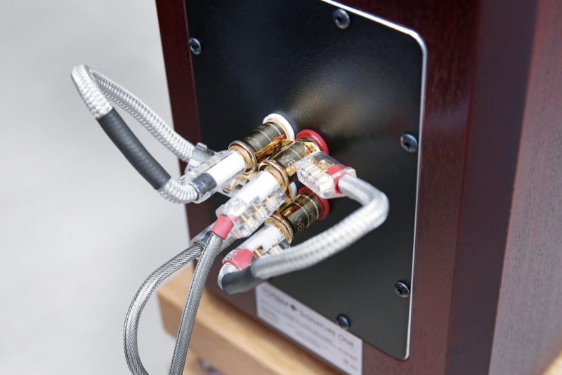 在其背板的接線柱採用WBT出品,支持雙線分音(Bi-Wiring),對於追求極致音質的用家,可通過雙線分音連接功放,進一步減少高低頻信號的相互干擾;即使是普通用戶,鍍金接線柱也能降低接觸電阻,減少信號損耗,且兼容市面上常見的香蕉頭、Y插、裸線等連接方式,實用性拉滿。