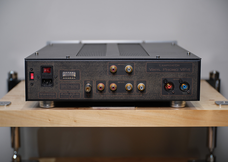 Lampizator VP4高端唱头放大器旨在通过真空管技术赋予黑胶系统强烈的生命力和动态表现。其一体式机箱结构内,电源、信号与管路布局紧凑合理,无负反馈设计确保了微电平阶段的唱头信号质量。VP4功耗约60W,重17kg,具备强大的物理基础。