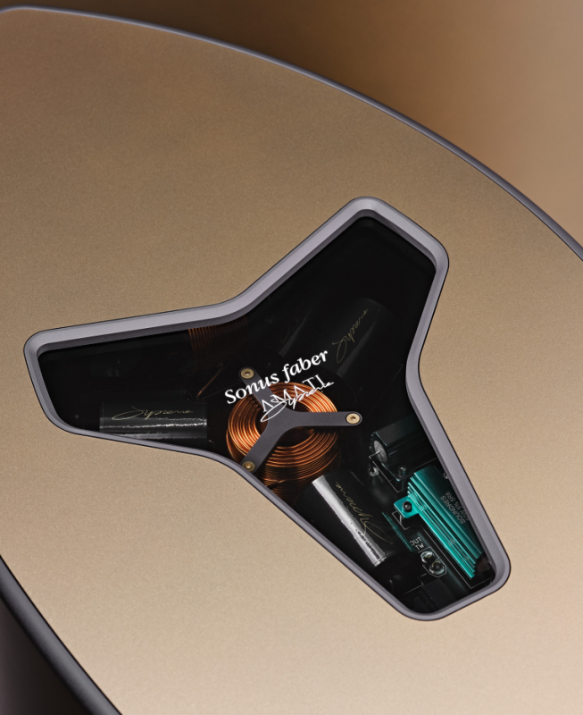 對細節的關注同樣貫穿了包括有獨立驅動系統所構成的聲學性能核心部分在內的整個附件設計中。一組絲膜穹頂高音單元和超高音單元保障輸出極佳的高清晰度高音,勢霸全新標誌性的「山茶花」中頻單元則能精細控制關鍵的中高頻段。這些元件安裝在一個軟木結構包圍的經過數控加工的鋁製法蘭上,通過這樣的結構設計可以優化氣流和頻率響應。