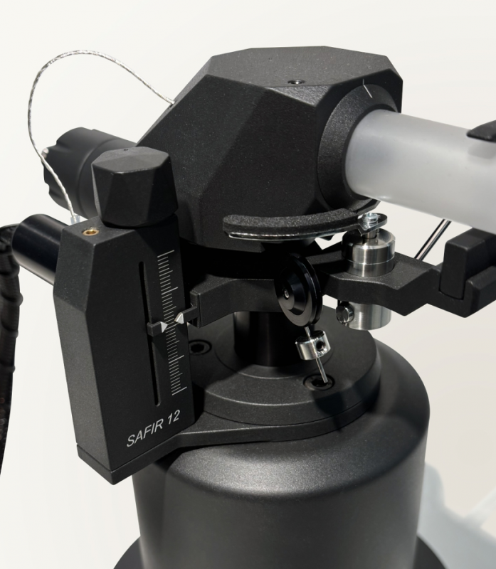 由於藍寶石的天然高密度,Safir 12唱臂也具有相當高的有效質量,更可以從物理角度抑制諧振。藍寶石唱臂管安裝在由實心鋁和黃銅塊組成的龐大組件中,為唱臂管本身提供極其穩固且機械運轉安靜的支撐。帶有鎖定機構的雙段式黃銅配重可精確平衡唱臂。方位角可進行小幅度、精確且易於重複的調節,且無任何間隙。