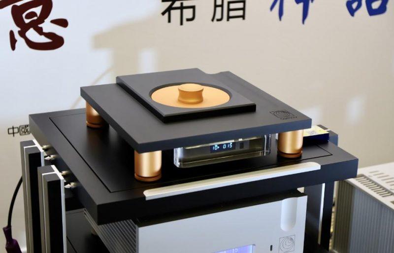 Ypsilon CDT-100 CD播放器,黑色+橙色的色彩搭配十分瞩目,给人高级感和时尚感十足的第一印象。现场的CDT-100非常漂亮,设计上区别于传统CD播放器,采用了顶置式CD转盘的模式。