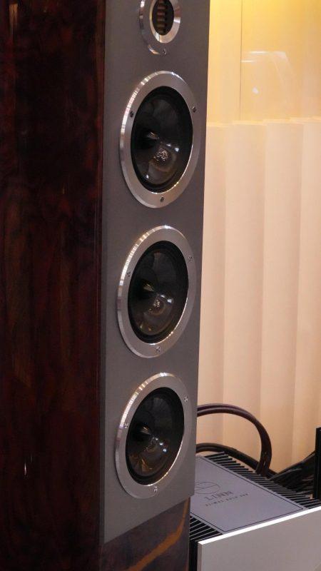 在高音单元下方的三只6.5英寸单元,尽管外观看起来一致,但它们各自承担不同的音频职责。其中一只单元专门处理3000Hz至450Hz的中频段,而另外两只则负责450Hz以下的低频响应。