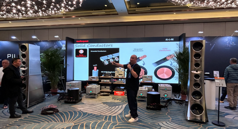 12月26日,泽森音响于中国大酒店举办Audioquest Lone Ranger独行侠喇叭线新品发布演示会,AudioQuest高级技术培训师Scott Shih先生担任讲解,并通过现场对比试听,向现场朋友介绍Lone Ranger喇叭线的设计理念、技术架构及其在AudioQuest线材体系中的产品定位。Lone Ranger作为最新推出的全频喇叭线,其定位介于Folk Hero系列与顶级Mythical Creatures系列之间,是一款典型的技术下放型产品,但相比早前发布的Brave Heart喇叭线更为紧凑,性价比更高。