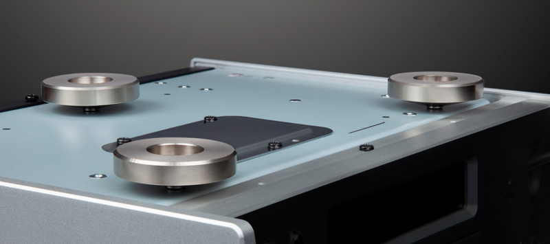 追求,堪称有 “声学强迫症”。先看它的 Stress – Less 隔震脚座,采用三点式实心钢材脚座,通过精密切削工艺打造而成。这三个脚座就像是三个训练有素的 “减震卫士”,通过巧妙的设计,实现了底板与脚座的 “微浮动” 连接。它们既能稳稳地支撑起机身,又能像过滤器一样,将来自桌面等支撑面的细微振动过滤掉,避免这些振动传入机身影响音质。在播放交响乐时,即使桌面因周围环境有轻微震动,隔震脚座也能保证 PD – 507T 不受干扰,让你清晰地听到小提琴的悠扬、定音鼓的磅礴,感受音乐最纯粹的震撼。