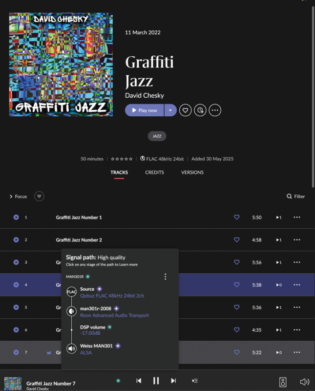 播放Graffiti Jazz这张电子专辑,爵士乐特有的氛围感被这两根线还原得非常鲜活。低音贝司的沉吟层层叠叠地来回滚动,营造出一种迷幻的现场感。电子打击乐有着准确的强弱对比,既不会影响雾气笼罩一般的听感,又不会失去感染力。在这样的背景乐器伴奏下,钢琴的声音也显出一丝潮湿的味道,昏黄的光亮闪烁飘动,每一次琴键的重击仿佛在黑暗中爆开的火花。电子合成器模拟的小号声听上去格外别致,有一点喑哑的听感,带着随性和忧郁。这一切的特性都被这两根线灵敏地捕捉并还原了出来。
