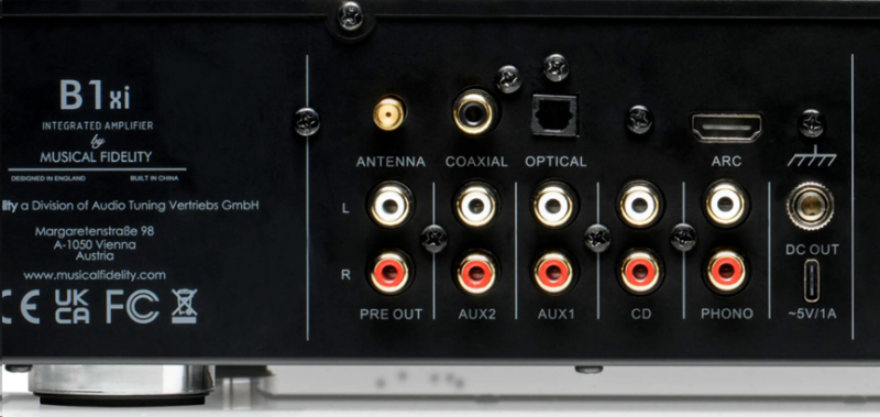 B1xi多功能合并机拥有丰富的功能,专为满足当今多样化的聆听需求而设计,从背面接口清晰可知。B1xi支持纯模拟信号输入输出和数字信号输入,前者包括1组RCA Phono(MM唱头)输入、2组RCA多媒体Aux输入,以及Pre Out前级输出。如果用户需要进行双功放驱动抑或连接低音炮,前级输出则可以为你提供这些功能和使用扩展。