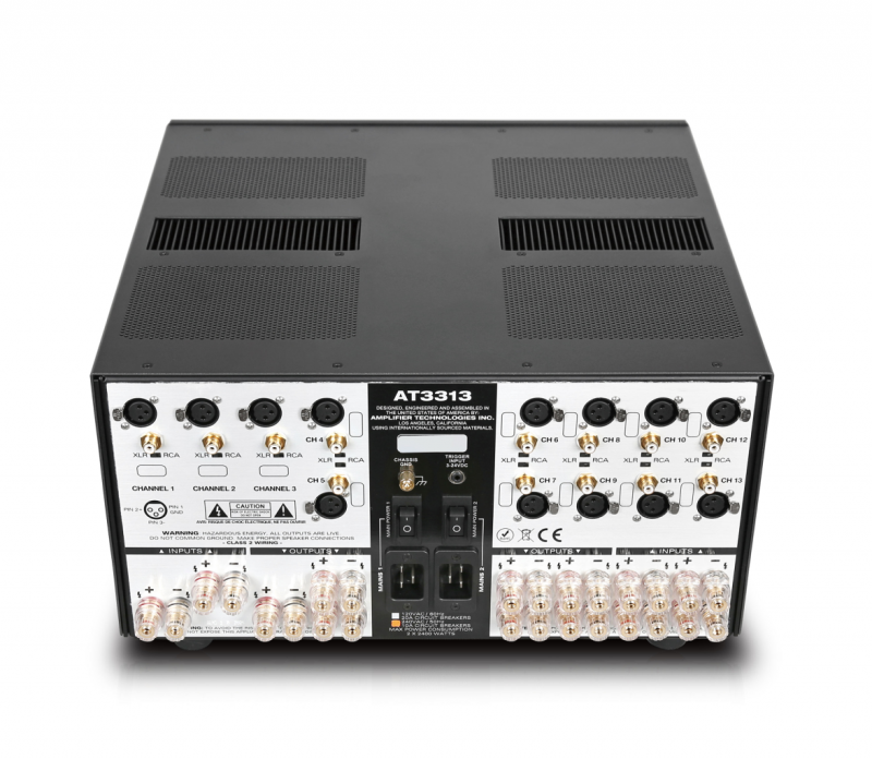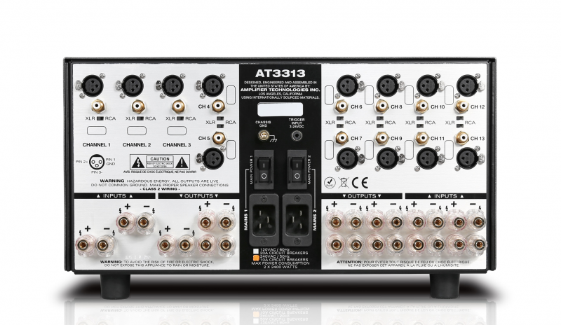 AT3313是ATI为满足高端影院对更多声道需求而推出的13声道AB类后级功放,可以说,AT3313满足了部分严苛用家低失真、高效率、大功率和均衡音质的需求。AT3313的13声道输出可满足7.1.4杜比全景声系统的配置需求,契合了当下影音发烧友对沉浸式体验的追求。与其他AT3300系列产品每声道330W的统一功率输出不同,AT3313采用了前置LCR声道330W+其他声道165W的灵活配比方案。尽管采用了不同功率的声道配比,但AT3313的总功率输出仍然可以达到2640W,与8声道型号相当。