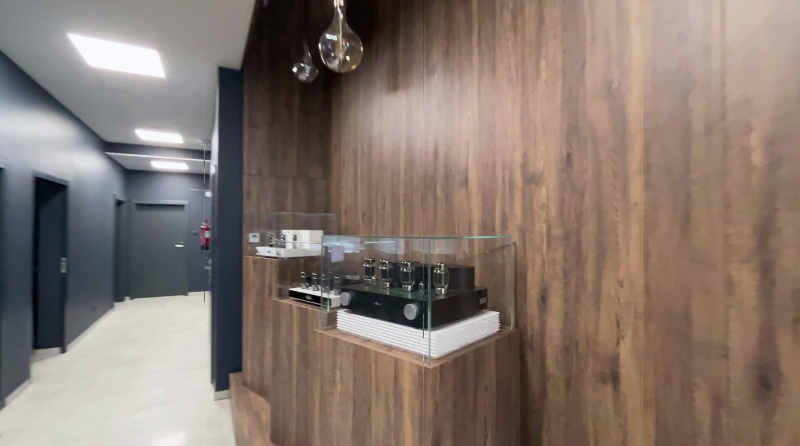 欧洲音响厂家的规模以及功能布局都基本拥有一个规律,但门面上一般都较为低调。在大门入口位置一侧属于Fezz Audio CEO Maciej Lachowski的办公室和接待区,紧随后方则为市场、行政和财务的办公室,而在大门入口的走廊深处则是一间听音室,其用于产品聆听和演示。而办公区可以通过另一扇门进入变压器和胆机的生产车间,由于做好了空间布局和隔断,因此车间噪音等污染都得到隔绝。二楼则为总设计师和研发工程师的办公室,电脑上各种CAD设计图、桌面上的组件以及墙上黑板的设计目标都清晰可见,这里的智慧结晶让Fezz Audio产品永葆生机和长青。