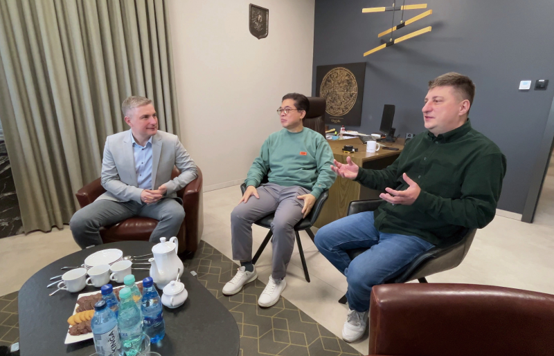 左至右:Tomas Lachowski先生、冯总编、Maciej Lachowski先生
