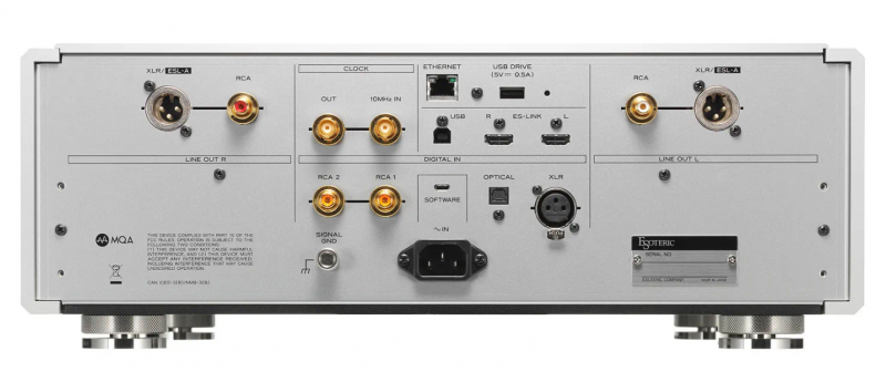 接口的丰富性,进一步提升了N-01XD SE的搭配灵活性。其数字输入接口涵盖ES-LINK×1、XLR×1、USB Type-B×1、Toslink×1、RCA×2、Ethernet×1、USB Drive×1、Clock×1,无论是连接电脑、转盘、游戏机,还是外接Esoteric G-05等专业时脉产生器,都能轻松实现;输出接口则配备XLR/ESL-A×1、RCA×1、Toslink×1,可灵活搭配功放、有源音箱等设备,甚至能通过可变音量输出兼作前级使用(原厂建议作为纯数字音源使用,音质更优)。