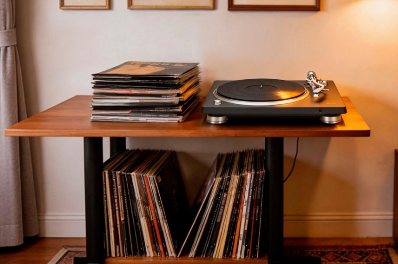 这种设计思路显然考虑到了现代家居环境的审美需求——黑胶唱机不仅是音频设备, 也逐渐成为客厅空间中的视觉元素。