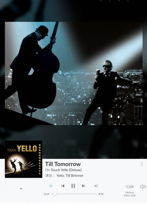 本次試聽在香港盛亞音響聽音室進行,通過Roon播放數字流媒體音樂。在播放2009年發行的專輯《Touch Yello》中瑞士電子音樂組合Yello與德國小號演奏家Till Brönner合作的《Till Tomorrow》時,MA3i體現出精準的平衡能力和十足的控制力。Yello標誌性的電子音效與Till Brönner溫暖的長號演奏,營造出一種夢幻般的氛圍,配合精緻的編曲和豐富的音色層次,帶來舒適輕鬆的音頻體驗。長號音色充滿了層次感與深度,電子音效則以細節和節奏感控制全場,音樂中的每一個細節都得清晰鮮活,低頻部分的力度與控制力令人印象深刻。在MA3i的演繹之下,音樂的空間感和立體感極為突出,樂器在空間中的定位也顯得凝聚而集中,完整地體現出Meitner品牌數字處理技術的優勢來。