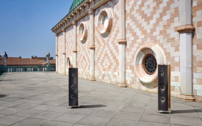 从音箱顶部可以看到箱体设计的不对称性和不规则性,靠内侧的侧面板被设计成内凹的曲面,左右侧面板以及后方背板与前面板均非平行,极大限度减少了内部驻波的产生,缔造理想的内部声箱环境。尽管设计手法很固定,但是制作难度高。总的来说,Accordo Unica遵照了Accordo系列在镜像对称和不规则设计的精髓,技艺更是有过之无不及。全新旗舰的Accordo Unica座地式音箱都旨在虚拟出那份主角在前、伴奏在后,主次分明又互相衬托的舞台感和临场感。