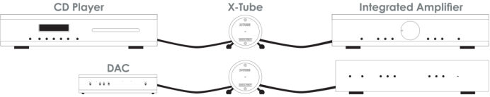 作为设备与设备之间的中间级,X-Tube的应用范围非常广泛。放眼当前,数字流媒体播放器在软件方面表现出色,同时通过最新的DAC解码技术实现了优秀的数/模转换,但它们在模拟输出方面往往有所欠缺。而当它们的模拟驱动能力不足时,X-Tube就能很好地弥补这一缺陷。在音源和放大器之间,或者DAC解码器和放大器之间,X-Tube能为数字 CD 或 DAC 音源增添电子管般的音色特性、深度和丰富度。而在串流播放器身上也有同样功效,X-Tube纯净的高阻抗电子管输入,对于大部分串流播放器这类集成电路方案来说也易于驱动。