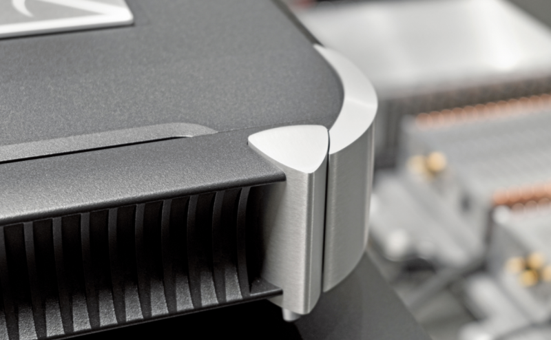 从791的外观设计和制造工艺上也可以看出这种坚持带来的优势:North Collection系列的机箱进行了全面重新设计,仅提供双色配色——黑色搭配银色弧型肩部,取消了原有的全银色和全黑色版本;顶板上设计了醒目的全新大号商标,同时也是散热孔的中心;同时顶板也是无螺丝设计,进一步提升了整体质感。另外,侧板上的散热鳍片也经过了优化,略微向上弯曲的设计更加优雅。