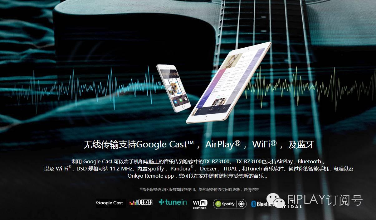 利用Google Cast*可以將手機和電腦上的音樂傳到您家中的TX-RZ3100。TX-RZ3100也支持AirPlay,Bluetooth, Wi-Fi®,DSD規格可達 11.2 MHz。