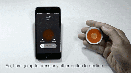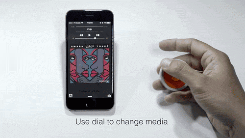 O6控制器直徑約40毫米,厚度約11毫米,外觀看上去更像一個夾克紐扣,或者是一款橘色面板的智能手錶。它配置有防水系統,外圍的鋁製機身是觸摸傳感器和運動傳感器,它通過藍牙4.0進行連接,並可以循環充電。