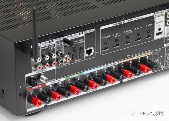 引人注目的是五個HDMI 2.0輸入和一個HDMI 2.0輸出,全都支持HDCP 2.2和直通4K/60p以及HDR信號,使Denon可配合超高清藍光播放機使用。HDMI輸出還支持音頻返回通道。