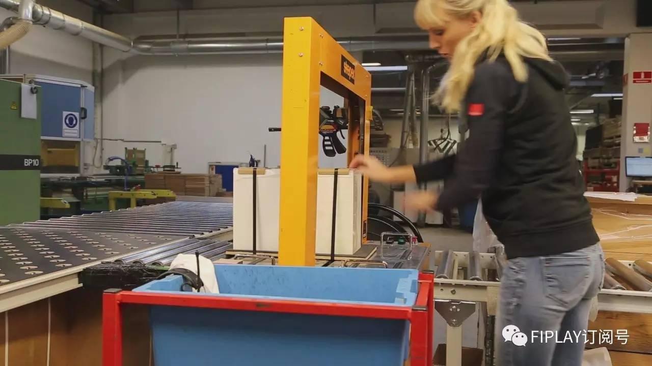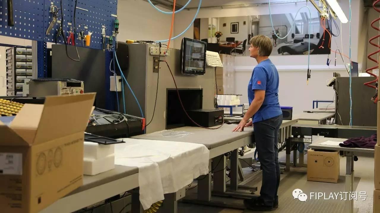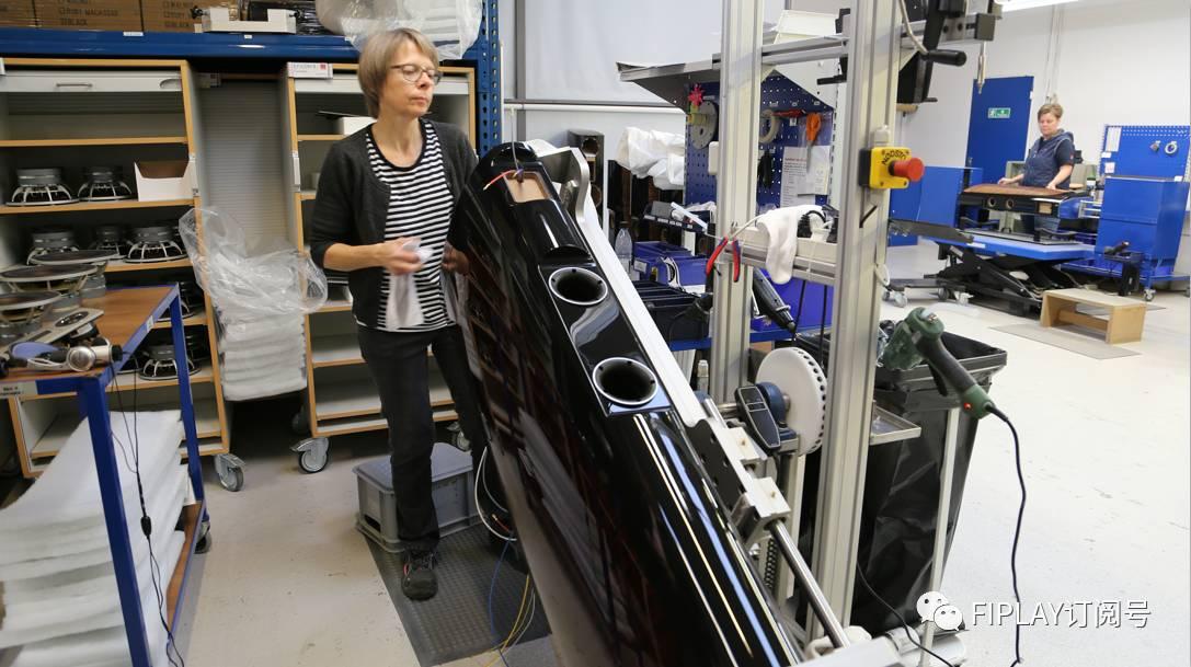整个装配均形成了一个闭合的流水线,包括对PDF原材料进行切割、贴木皮后制作箱体、箱体定型、单元组件的装配工作、清洁和木皮颜色检查、充磁等环节。而在这些过程中,工作人员可以通过一些助力的工具,对大型的EPICON进行翻转和侧倾等作业,实现轻松的翻转和升抬,同时亦检查产品的上漆和成色!