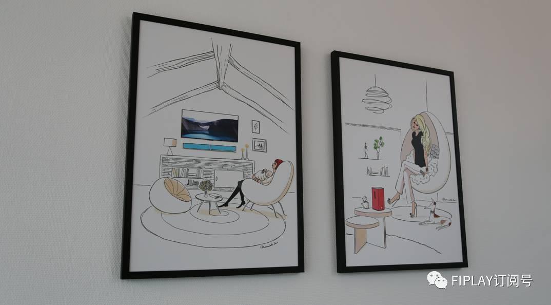 入门处有很多挂画,都描绘了音乐和音响之间的关系,展现出浓郁的音乐氛围