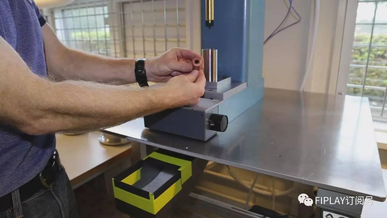 Thomas向我们展示了机器对木材切割的精准操作,实现V Cut表现,所谓V Cut就是令木头完美折叠成弯角,切刀只切到木的部分,而木皮却依然保留,从而令外饰木皮实现完整性和一体化