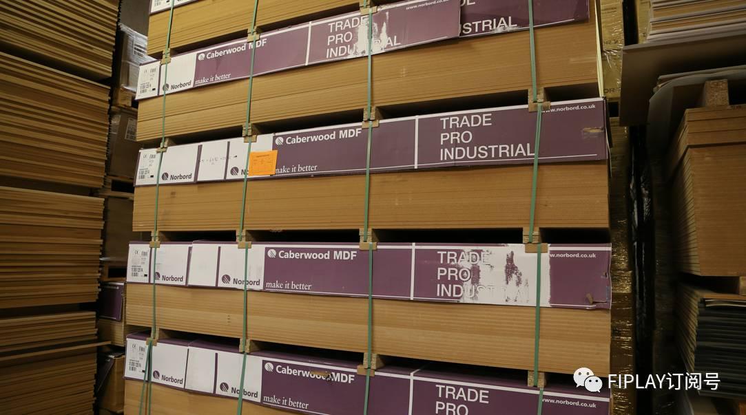 仓库除了摆放大量成品产品外,更有大量用于制作箱体的高级MDF板材