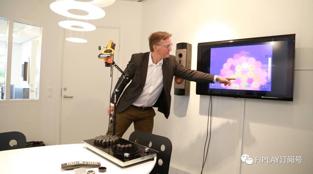 而现场,Kim则向我们演示了对不同材质的Pole Piece极片通过电磁炉加热,模拟长时间工作时单元的发热情况,通过红外线传感测量温度变化,通过屏幕显示,采用SMC材料的极片,能保持温度上限(紫色,温度越低色彩越冷),而其他材质的则一直飙升到红色,效能自然大打折扣!