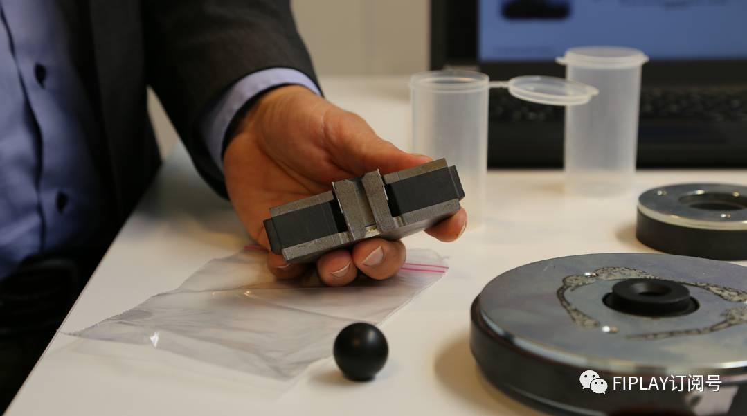 在参观完整个车间装配流程,DALI R&D研发经理Kim Kristiansen向我们讲述了DALI第二项重要机密SMC(SoftMagnetic Compound软磁性复合物)专利技术,其实SMC并非磁体上的技术,而是使用在单体磁铁轴承中的极片(Pole Piece)上。