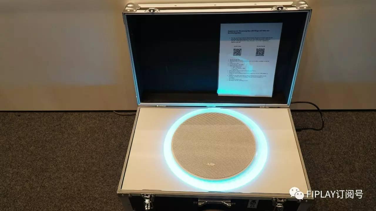 KEF展出定制安装产品外,也针对Hi-Fi类产品展示了不少,例如不久前发布的LS50有源扬声器,不同颜色版本都有所亮相。展位也展出了EGG卫星箱和M500耳机,当然还有MUO无线蓝牙扬声器。最后我们还发现了一个吸顶扬声器与灯结合的产品,大家可以看看图片,这个样子天花就不用打这么多孔了。