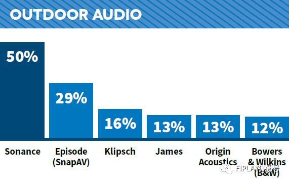 在户外音响领域,Sonance创造的骄人成绩有目共睹,与上一次的榜单极其相似,户外音响市场依然被Sonance占据。其他的品牌在过去一年也有不同程度的增长。