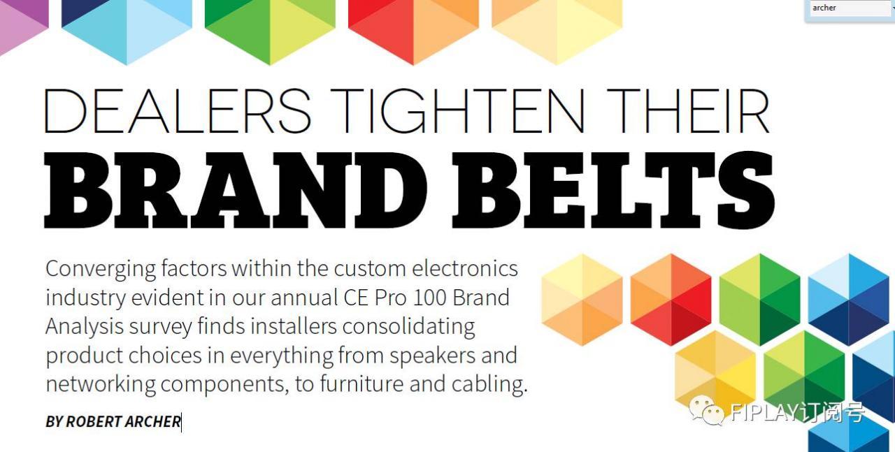 作为美国最大的定制安装类产品年度排行榜,CE Pro 100以其权威性的数据调查方式受到广大电子行业厂商的关注,全世界各大定制安装品牌也都以在CE Pro 100的榜单中占有一席之地而自豪。CE Pro 100是根据CE Pro的资深主编Robert Archer提供的一份最常用产品厂商的深入调查报告分析而得的,其针对经销商对不同品牌的应用数量来进行调查和统计的,其数据也将直接反映到CE Pro 100的数据排名中。