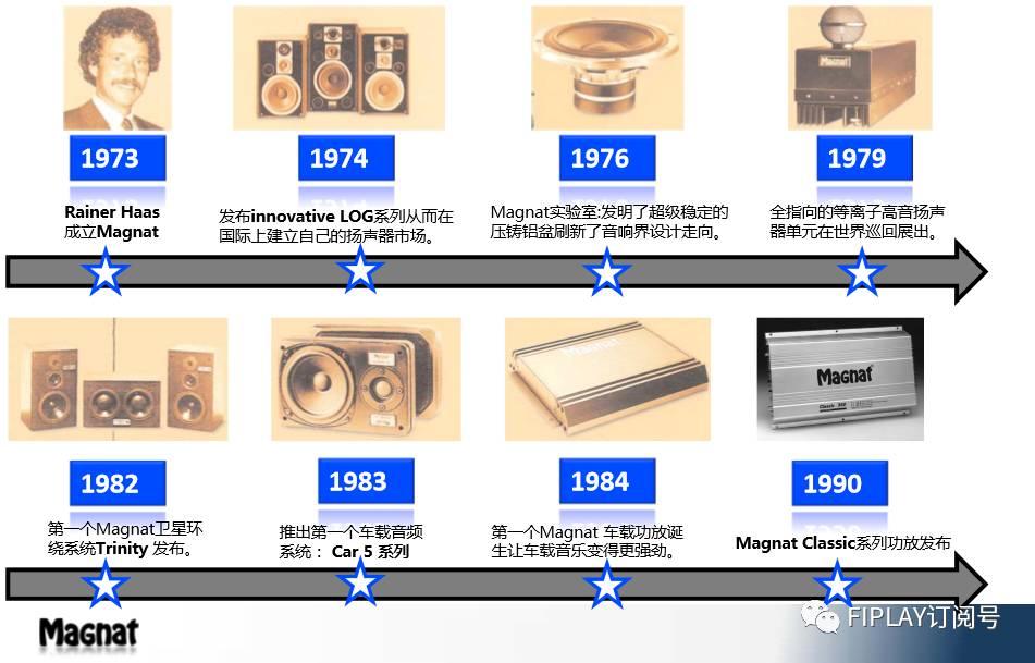 1973年,RainerHaas先生创立了 MaGnat公司,并于次年研发出极 具创新精神的“LOG”系列音箱, 凭借这一系列MaGnat奠定了其在 音响行业的领先地位。