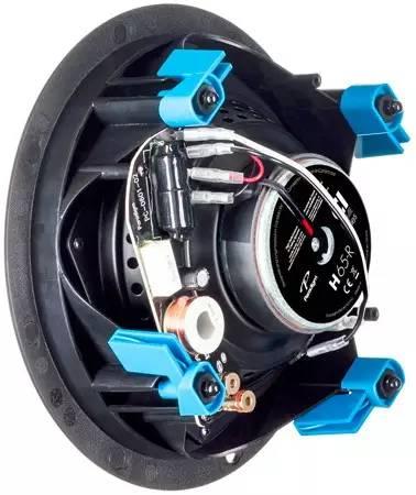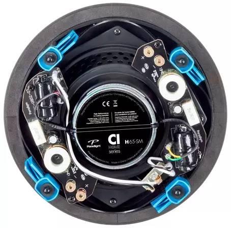 Paradigm還開發出一種特別的卡榫,不需特別打洞,只要量測好本體的孔洞大小,將H80-R安上,以螺絲起子轉動螺絲,就會轉動卡榫,整個揚聲器就被卡榫調掛在天花板的孔洞上,施工更簡單、安裝更便利。揚聲器框架為了輕量化,採用ABS材質框架,比起金屬框架為輕,還不會有氧化、生鏽、掉漆的問題,比起普通的塑料也更為強固耐用。除了H80-R之外,該系列還有H65-A和H65-SM等定製安裝揚聲器。