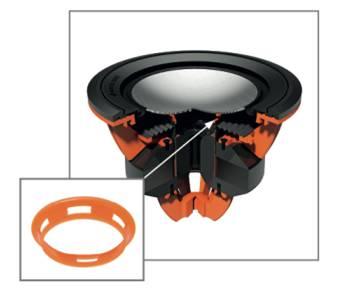 驱动单元的一项革新,振膜和音圈之间的柔性耦合代替通常的刚性耦合。这种尼龙环“动态耦合滤波器”能够精确校准交叉频率,像是在其上面配置弹簧一样起作用。这样动态耦合滤波器能帮助抑制由驱动器产生的多余高频能量。它上面也打孔以助于音圈冷却并释放锥体后的气压,以达到最大的驱动器功效。