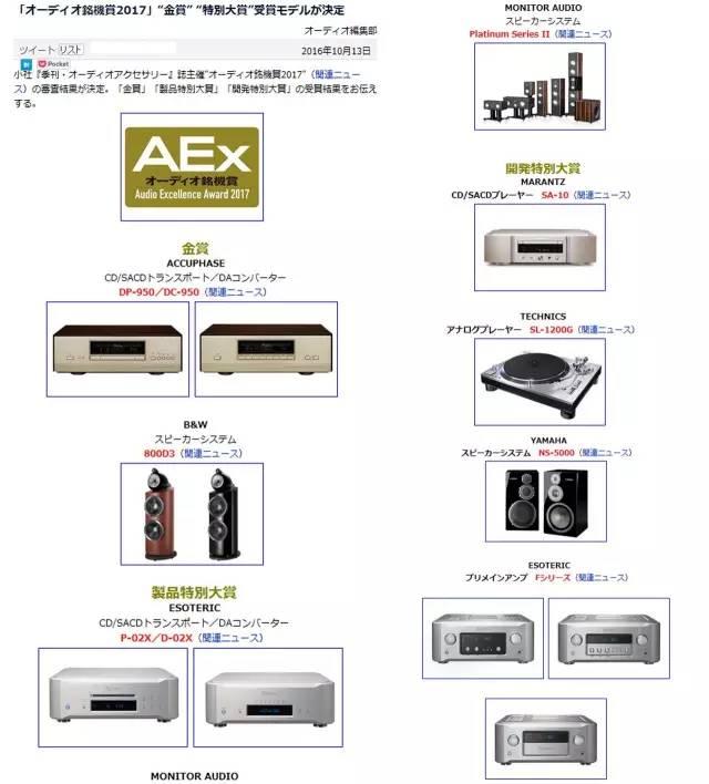 日本Audio Excellence Award大奖,全称是日本视听名机赏(Audio Excellence Award)创办于1978年,由日本”株式会社音元出版”主办,该奖项每年年底评选,由多位日本具备视听行业经验的批评家,评选出一批具备技术亮点、并预测将在市场广受欢迎并热卖的新锐视听产品。本次Monitor Audio PL II系列所获得的,是”2017年制品特别大赏”奖项。