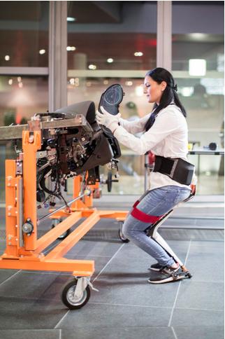Chairless Chair主要使用铝和碳纤维制作框架,因此只有2公斤重。因此其不会成为穿戴者的负担,只会对行动产生微小影响。将来,这款装置上可能安装智能马达,可以猜测使用者的意图,甚至无需按钮即可提供理想坐姿。