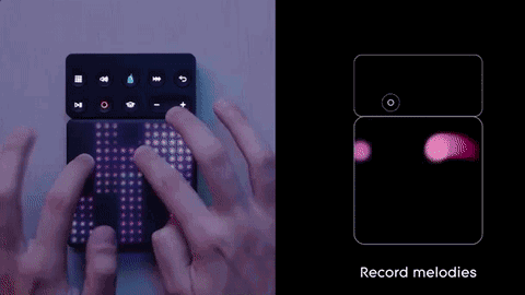由於這塊觸摸板支持壓感操作,所以當你的手用不同力度按壓的時候,它表面燈光會產生不同變化,同時聲音也會產生變化,通過重壓和輕按得到的聲音是不同的,而手指在上面來回滑動的時候,也會對聲音產生潛移默化的影響,創造出與眾不同的效果。即便你是一個完全不懂音樂的人,在觸摸和按壓的過程當中,你也能慢慢摸索出來它的音樂變化。