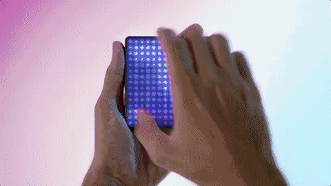 作為主角,Lightpad Block 的作用就是充當「音樂鍵盤」,它的大小和手掌差不多,尺寸 94×94×20mm,重量只有 250g。打開開關,連上手機後,你會發現上面有不同顏色的 LED 燈在 5×5 的網格中不規則點亮,每一個色塊都代表着一個音階。在手機 app 上,你可以在一百多種不同的樂器或者伴奏中選擇自己最需要的那種