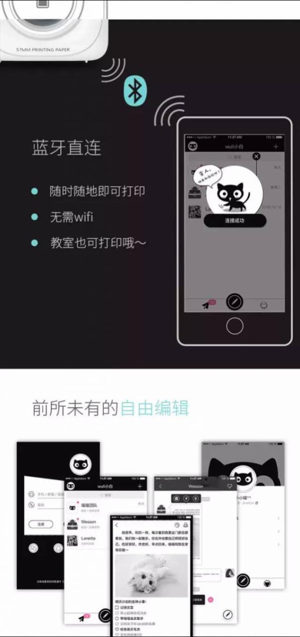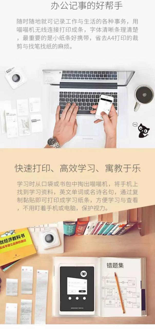 不过喵喵机和传统的热敏打印机还是有些区别的,它不仅可以进行简单的数字和文字打印,而且还能进行图片或图文混编打印,而且内置电池,随时随地都能开启打印,可玩性还是很高的。