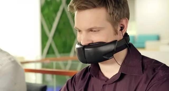 这个面具设计成环状,佩戴时正好可以遮住嘴部,不仅可以让你“静音”,防止别人听到你们的对话,内置的麦克风也可以保证通话对方能清楚地听到你的声音。