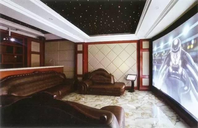這間家庭影院裝修案例銀幕採用150了弧形幕,投影機採用了SHARP日本夏普Z30000,看3D電影立體感超過商業電影院,影院揚聲器採用傑士THX系列,功放是日本著名音響品牌INTEGRA,影院的低頻效果非常震撼,給人一種身臨其景的效果。KTV採用丹麥CAD,12寸專業揚聲器,帶來超大的動態效果,唱歌輕鬆,音色甜美,所有音響設備、燈光都採用KOTI智能中控實現一鍵式智能控制,方便操作。
