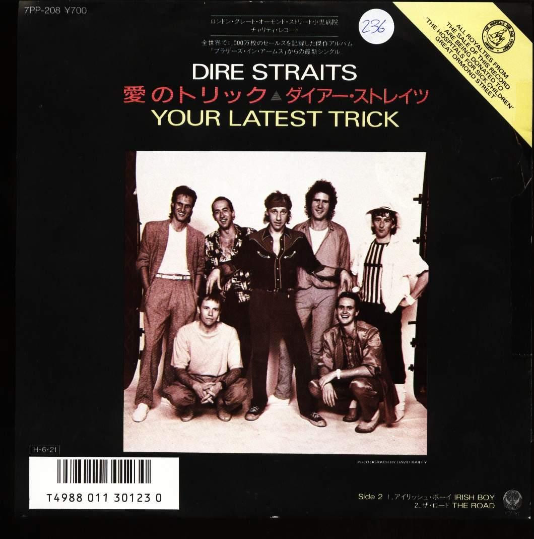 Dire Straits的【Brothers in Arms】专辑在世界各地乐坛大受欢迎,你猜专辑内那一首歌,最多香港人听过呢?………….我猜一定是《Your Latest Tricks》。点解?……………多得TVB电视剧【壹号皇庭】改编了《Your Latest Trick》做主题音乐。【壹号皇庭】由92年至97年一共五辑,当然家传户晓啦!
