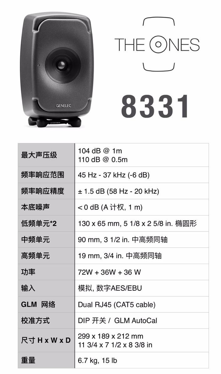 Genelec 8331 超紧凑同轴三分频智能扬声器