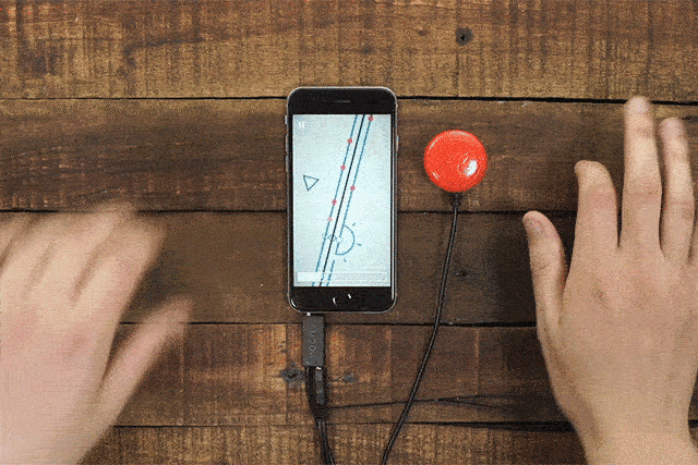 Mogees Play向开发者开放了自己的 API,开发者能够为它创造出全新的玩法。比如在 Mogees Play 的帮助下,你可以利用敲击杯子的方法去玩Flappy Bird,这种新的玩儿法也是很有乐趣。