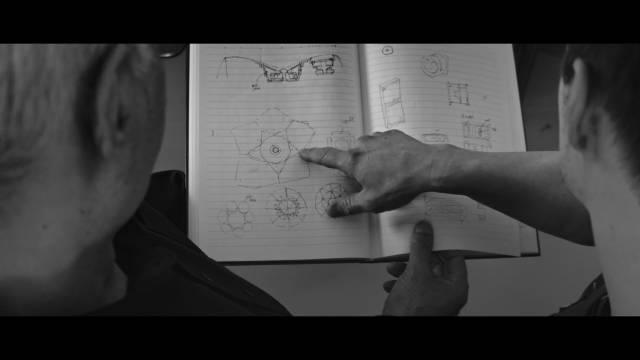 有沒有注意到,最初的幾個鏡頭中出現了真力創始人 Ilpo Martikainen 的筆記本(第42本工作筆記)和他曾經使用的工牌。筆記本上是他手繪的真力同軸三分頻設計的雛形,細看會發現信息量相當大。